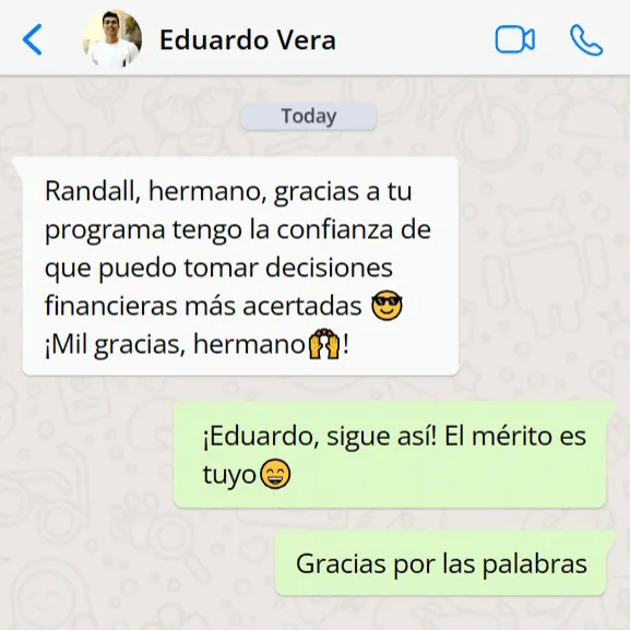 "Gracias Randall por tu programa. Es una herramienta invaluable para cualquiera que quiera mejorar sus finanzas y este dispuesto a poner esfuerzos en su libertad financiera."